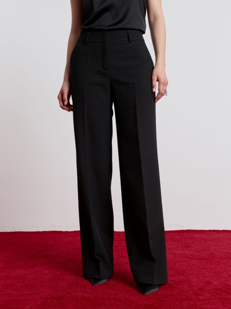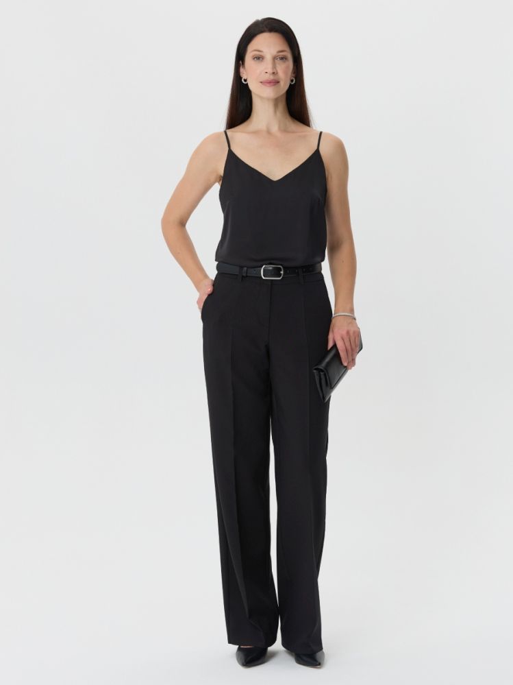 Откройте для себя идеальные брюки прямого силуэта чёрного цвета, ставшие нашим бестселлером. Благодаря превосходной посадке по фигуре, они подчеркнут все ваши достоинства. Выполненные из ткани необходимой плотности, брюки прекрасно держат форму, обеспечивая комфорт и стиль в любой ситуации. Эти базовые брюки станут незаменимым элементом вашего гардероба, идеально подходящим как для повседневной носки, так и для создания элегантных образов на торжественные случаи.