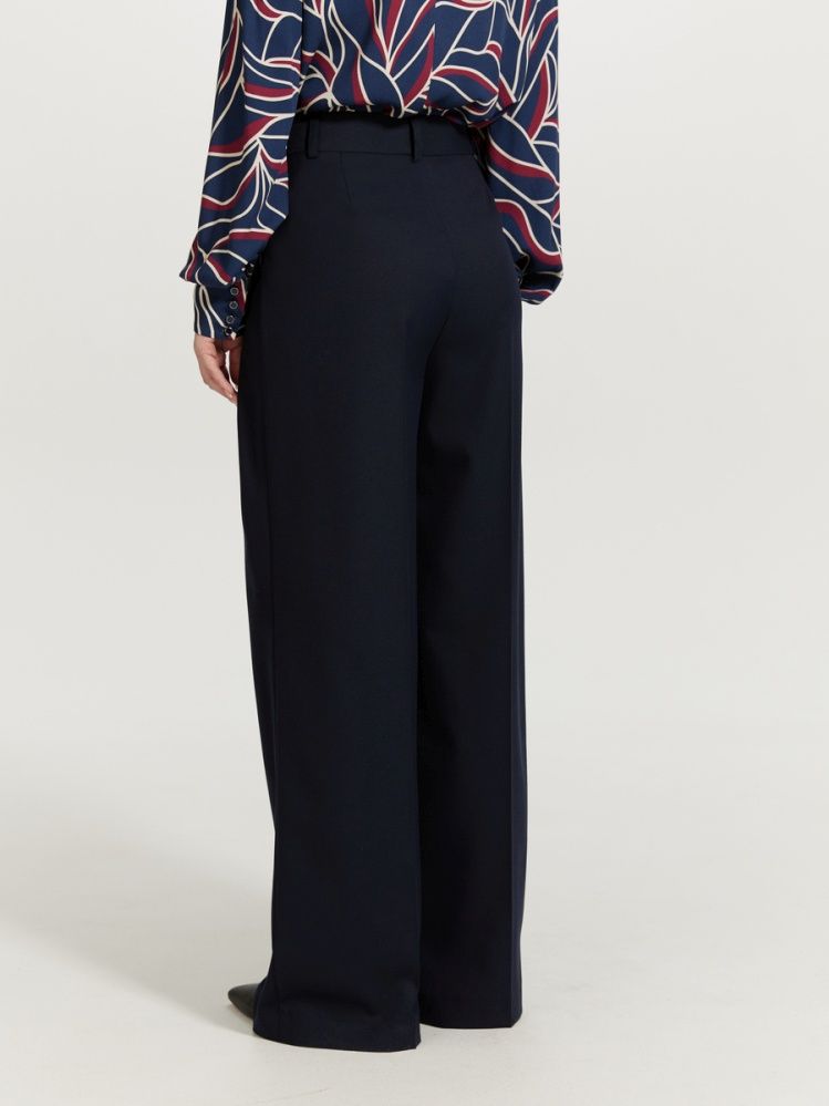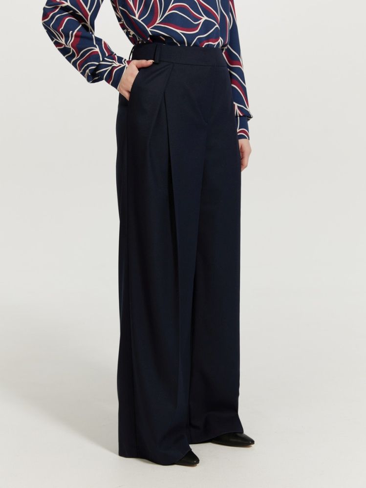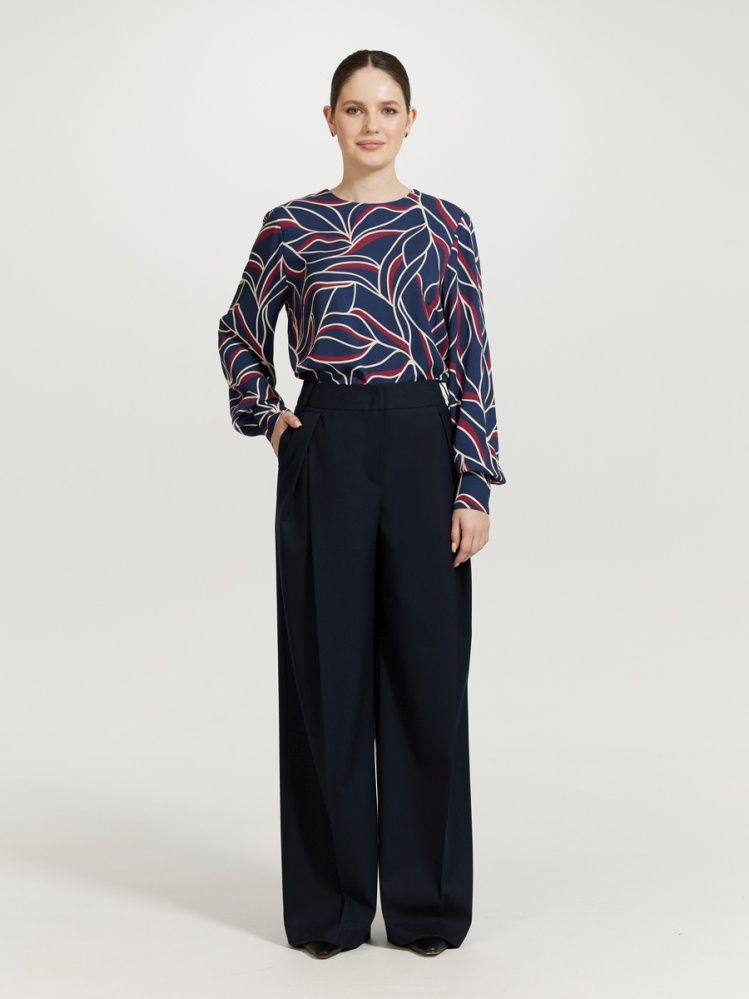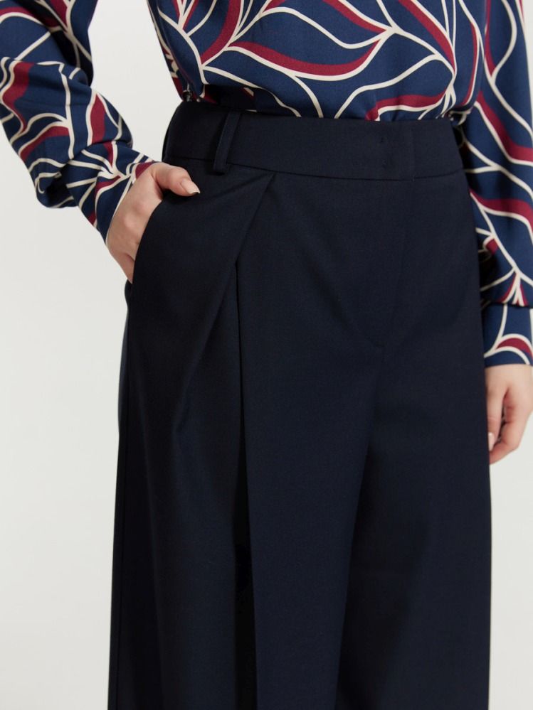 Брюки с акцентной линией талии и глубокими графичными складками. Благодаря выверенной конструкции и инженерии дизайна идеально сидят на фигуре, комплиментарно подчеркивая ее. Сложный крой деликатно сочетается с классическим синим цветом. Изделие выполнено из комфортной, несминаемой костюмной ткани. Для создания респектабельного total look образа идеальным будет сочетание из жакетом 2.3.4-872 из нашей капсулы