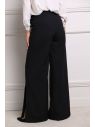 Брюки палаццо с разрезами на штанинах по боковым швам. Притачной пояс с резинкой по талии сзади. Карманы.