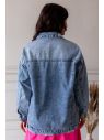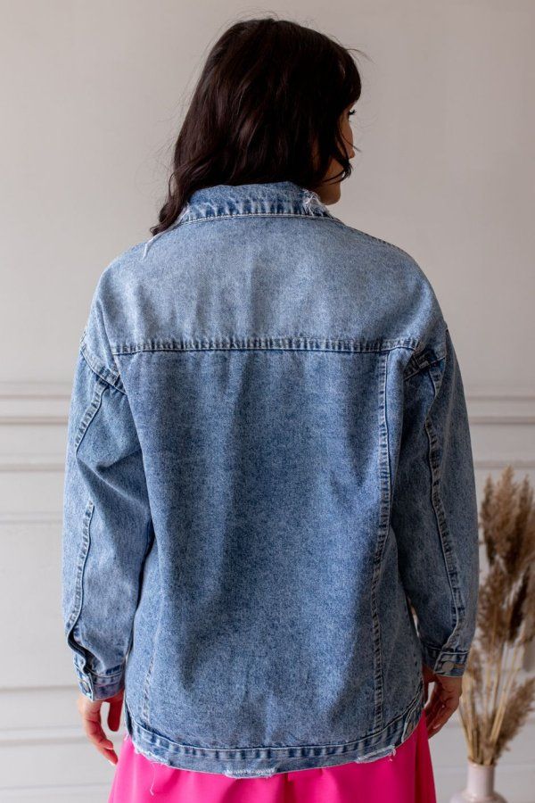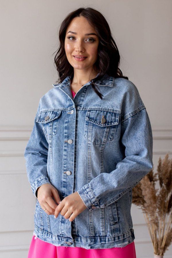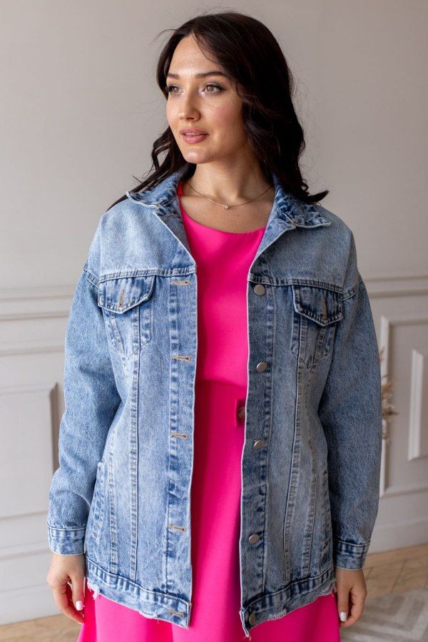 Ткань: джинсовая. Рубашка классического покроя, свободного силуэта с широкой линией плеча, отложные карманы, строчки, пуговицы, немного удлиненная. Рукав длинный. Длина ок.72см