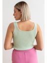 Ткань: трикотажное полотно облегченное с выработкой в резинку.Топ-майка укороченный, без рукавов. Длина изделия ок. 50см.