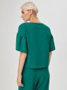 Свободная блуза с короткими рукавами-воланами сшита из тонкого крепа зеленого оттенка. Гладкая ткань почти не мнется и хорошо пропускает воздух, а V-образная горловина открывает зону декольте. Наши стилисты предлагают составить total look с брюками Б-2013 ТЕР(О2) для праздничных выходов.