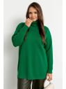 Ткань: трикотажное полотно. Джемпер свободного покроя, удлиненный, с высоким воротником-стойкой, спущенный рукав на манжете. Размер единый 44-52 .Длина ок. 75 см.