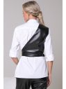 Необычный трендовый полужилет из экокожи придаст любому образу элегантный и вместе с тем дерзкий вид. Ассиметричная одежда - асбсолютный тренд года. Жилет на одно плечо на подкладе можно использовать как альтернативу классическому жилету для офиса, а можно комбинировать с вещами в стиле кэжуал для создания стильного повседневного образа. Объем по талии легко регулируется длинным поясом, благодаря чему изделие хорошо сядет на любую фигуру.