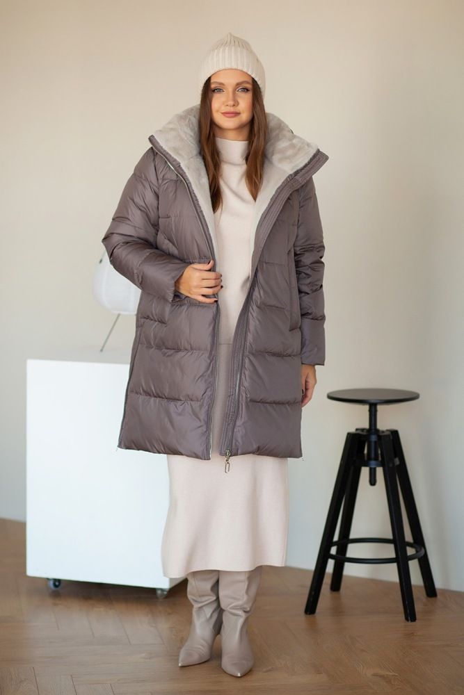 Ткань: плащевая, наполнитель био-пух. Полупальто зимнее, прямого покроя, воротник стойка, отделанный искусственным мехом под норку, с отстегивающимся капюшоном, застежка на молнию, прорезные карманы с листочками, закрывающиеся на кнопку, в боковых швах разрезы за счет раскрывающегося замка молнии.Длина изделия ок.94см. Температурный режим до -30 градусов.