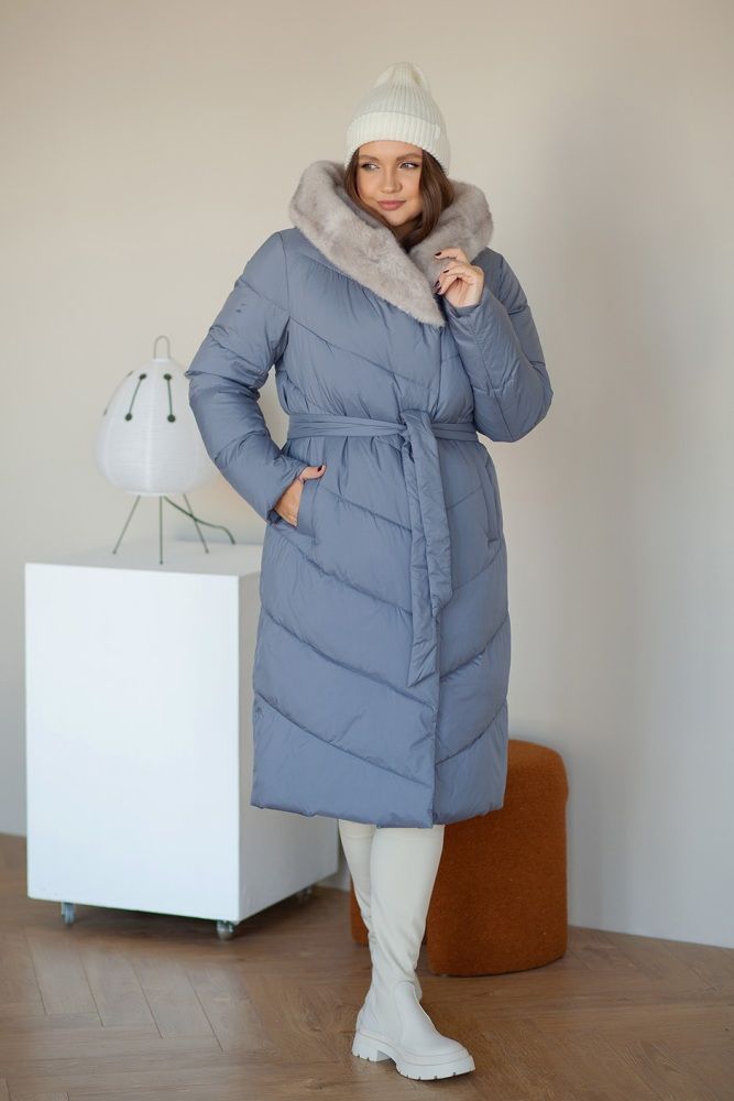 Ткань: плащевая, наполнитель био-пух. Пальто зимнее, прямого покроя,застежка на молнию и кнопки, прорезные карманы с листочками. Воротник шалевый,переходящий в капюшон, изнутри полностью отделан искусственным мехом под норку. К пальто прилагается пояс. Длина изделия ок. 108 см. Температурный режим до -30 градусов.