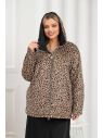 Куртка двусторонняя,на облегченном синтепоне.Одна сторона плащевая стеганная, вторая сторона спандекс с леопардовым принтом. Спереди застежка на молнию, с капюшоном, накладные карманы и кулиска по низу изделия. На второй стороне карманы прорезные с листочкой. Рукав длинный. Длина изд.ок.78см.
