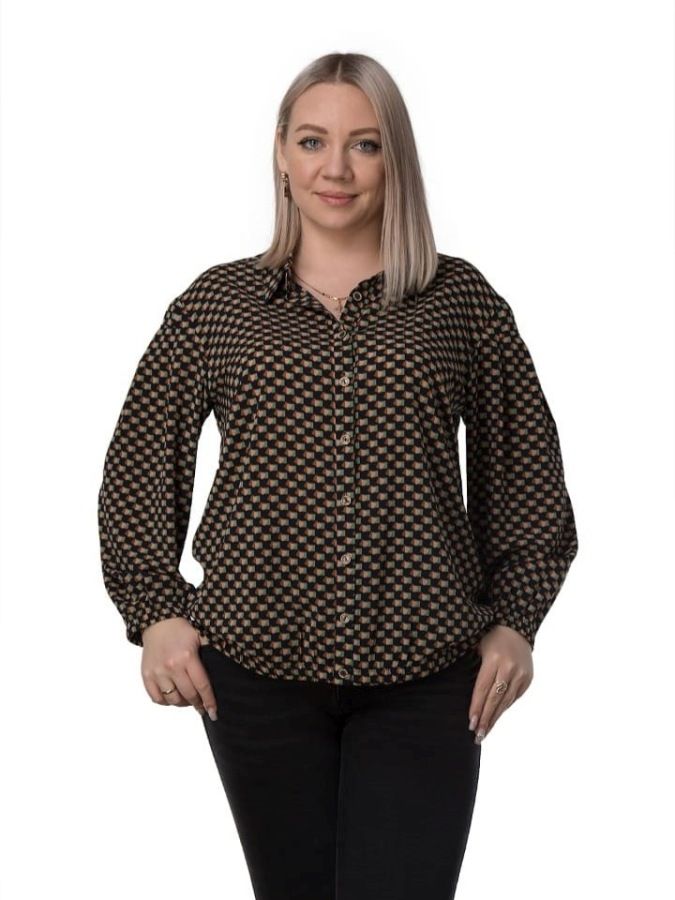 Блузка рубашечного покроя, застежка - на петли и пуговицы.