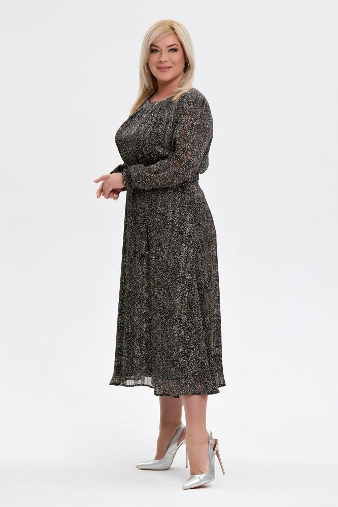 Платье Лючия в черном цвете, в состав платья входит шелк 30%, 65%вискозы и 5% эластана. С 48 по 62 размер. Классический крой платья на отрезной талии с поясом кушак, нежные рукава на резинке, шикарная принтованная ткань с шелком, придают праздничный, статусный вид! Будьте красивыми и стильными вместе с нами!