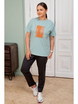 "Ткань: вискоза с эффектом «крэш». Блузка свободного, по горловине лежачая стойка, переходящая в планку с пуговицами, рукав цельнокроенный, по спинке – кокетка. Рукав короткий. Длина ок.65 см.