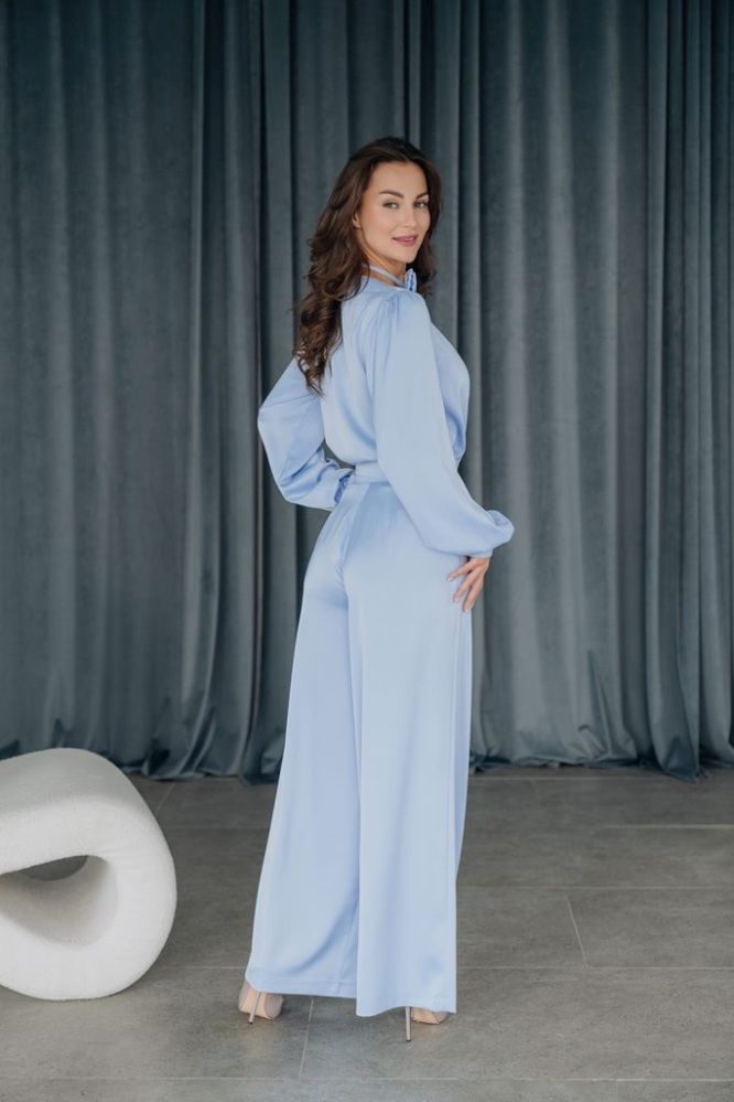 Мирра Блуза небесная (шелк)(бутоньерка) FARBERRY