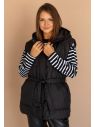 Ткань: плащевая, наполнитель - биопух. Жилет свободного покроя, с капюшоном, с накладными карманами, застежка на молнию и кнопки, прилагается пояс.