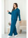 Ткань: креп. Рубашка прямого покроя, Рукав втачной, воротник на стойке, спереди застежка. Рукав длиннный с манжетом на одну пуговицу с декоративным отворотом. Длина ок.65 см.Брюки с высокой посадкой, свободного покроя, пояс на широкой резине.