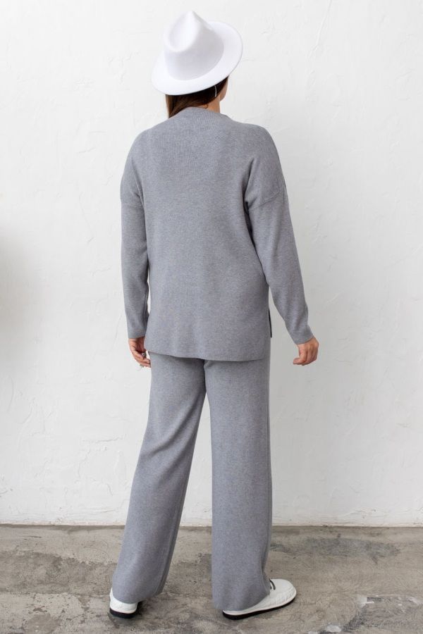 Ткань: трикотажное полотно однотонное. Джемпер свободного покроя с высоким горлом, по бокам разрезы, рукав длинный. Брюки с высокой посадкой, пояс на резине, немного расширены книзу. Подходит до 50 размера.Длина по внутреннему шву ок.74 см.