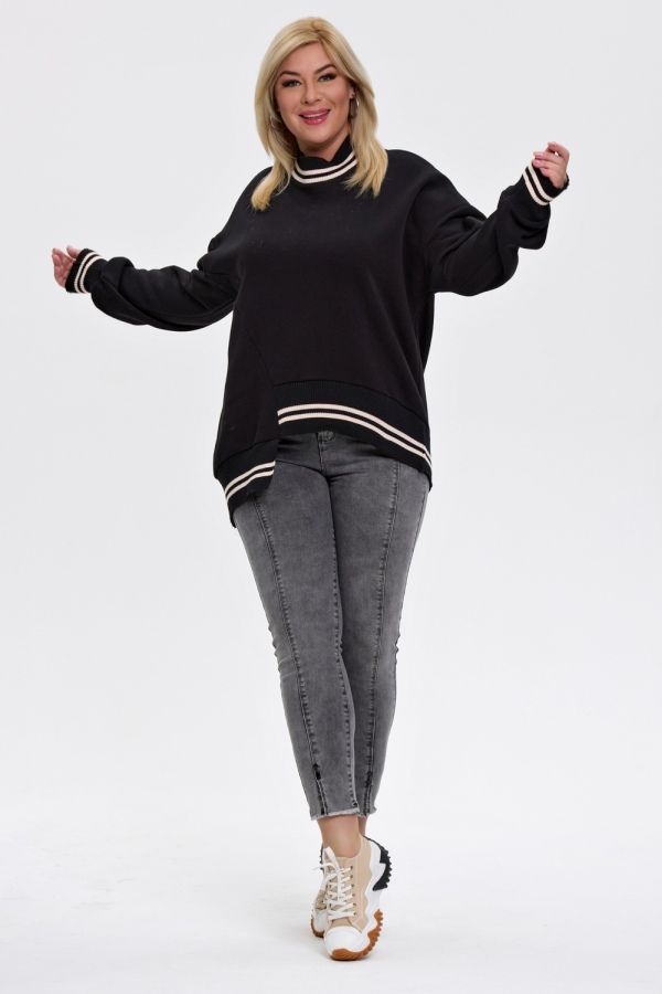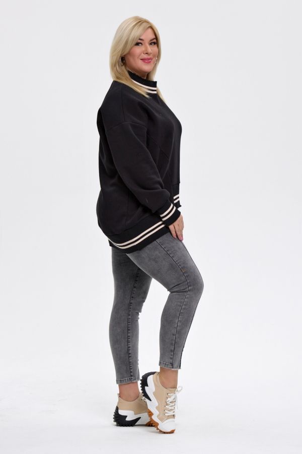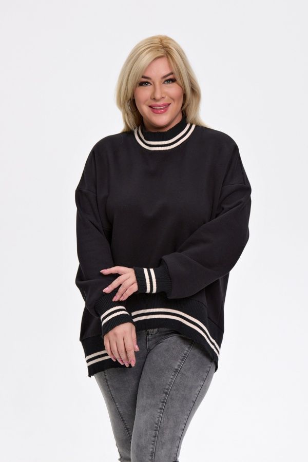 Джемпер Нойс в черном цвете на подвязах. Неповторимый дизайн, свободный крой, утепленный материал 65% Хлопок, 35% Полиэстер – придаст комфорт в холодное время года и заменит вам приевшиеся свитера! К этому джемперу мы предлагаем брюки Нелли из этой же ткани!