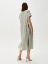 Легкое макси-платье в мелкую молочно-зелёную полоску подойдет как для прогулок по морской набережной, так и для города. Свободный силуэт достигается высоким подрезом и глубокими складками. Модель с короткими цельнокроеными рукавами на широких манжетах сшили из тонкого вискозного поплина, пропускающего воздух.