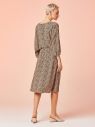 В этой модели анималистичный мотив уравновешен спокойным бежевым оттенком и мягким силуэтом. Платье с цельнокроеными широкими рукавами и пышным лифом, приталивается мягкой резинкой. Модель выполнена из тонкого невесомого материала, поэтому расклешенная юбка - миди хорошо драпируется книзу мягкими складками. Вырез лодочкой, рукава по низу поисобраны на тонкую резинку.