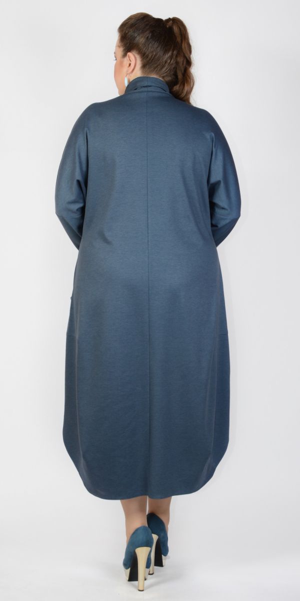 Эффектное платье свободно силуэта длины макси. Полочка платья с отрезной кокеткой. Лиф оформлен настрочными складками. Карманы в рельефном шве. Низ изделия овального покроя с вытачками придающими стройности силуэта.