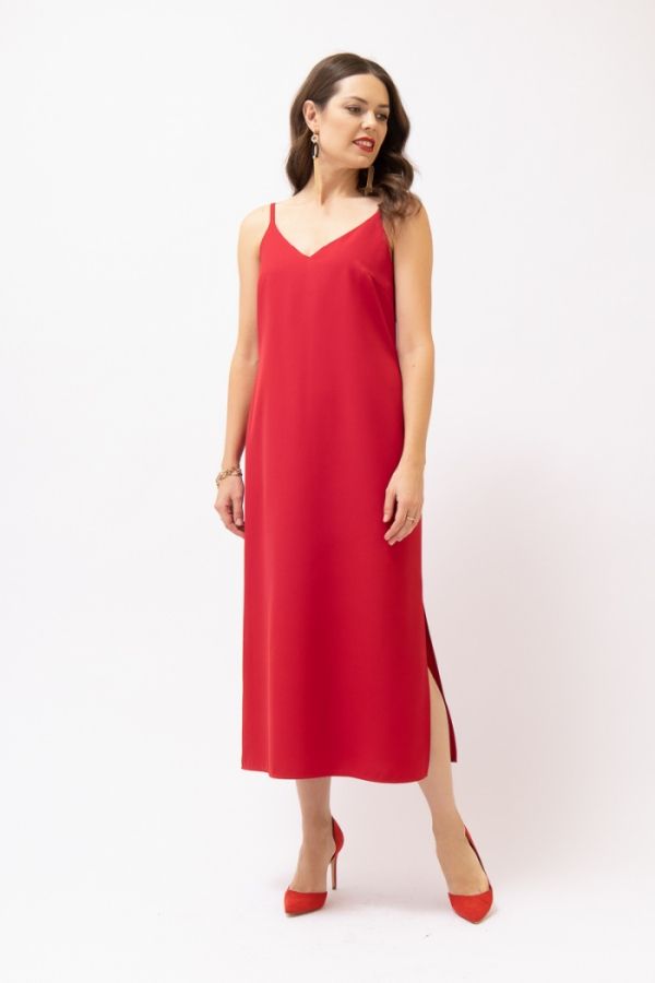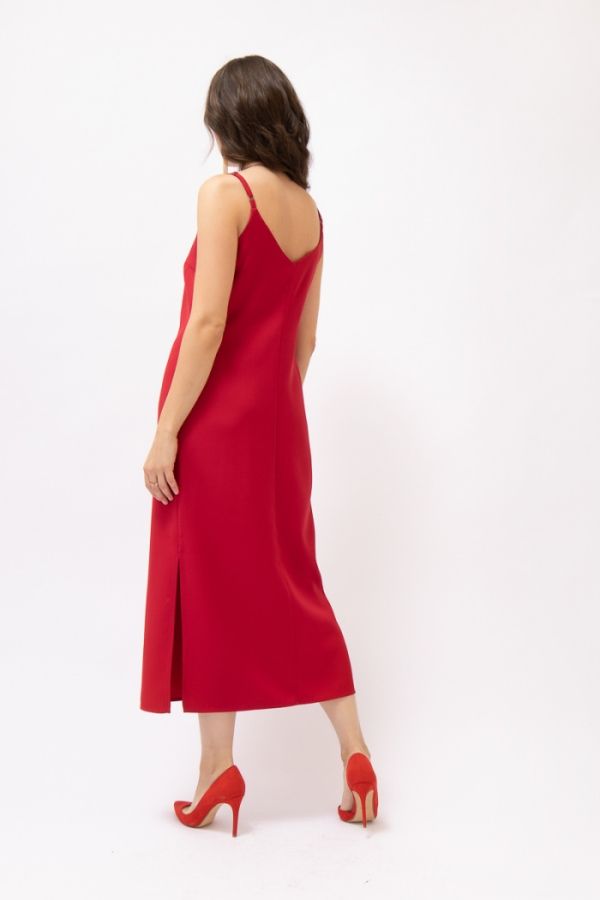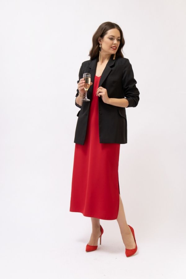 Платье-комбинация с разрезом сбоку из костюмной ткани средней плотности, можно носить без белья - второй слой как маечка. Держит форму. Бретели регулируются. Прямой крой, стройнит, скрывает несовершенства. Платье-комбинация универсальная. Летом носим как самостоятельную вещь или в сочетании с рубашкой, жакетом или джинсовкой. Зимой со свитером сверху или с водолазкой под платье. Платье не приталенное, если необходимо подчеркнуть талию - то в помощь ремень. Дополните аксессуарами и у вас будет отличный новогодний образ.