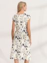 Раскрашенное миди-платье лаконичного кроя привлекает внимание нежным цветочным принтом на молочном фоне. Модель с V-образным вырезом, удлиненной линией плеча, без рукавов застегивается потайной молнией в левом боковом шве. Легкий вискозный материал имеет легкий креш-эффект на поверхности, хорошо пропускает воздух и сохраняет безупречный внешний вид в течение долго времени.