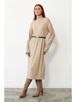 Ткань: искусственный шелк, набивной. Платье отрезное по талии, на резине, юбка расклешенная, удлиненная, V-образный вырез с декоративной завязкой. Рукав длинный, пышный, на манжете. Длина ок. 125 см.