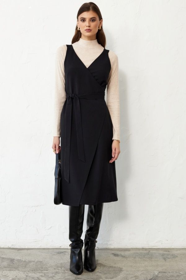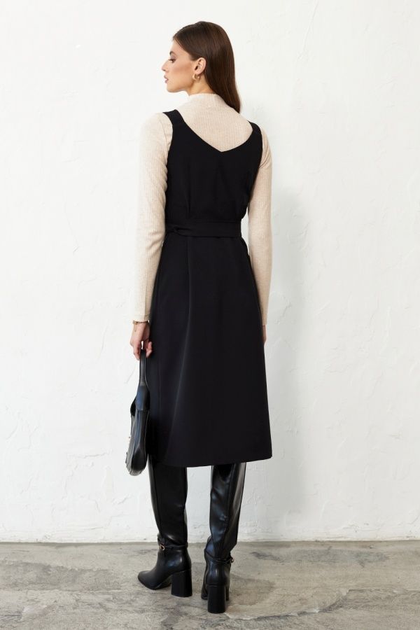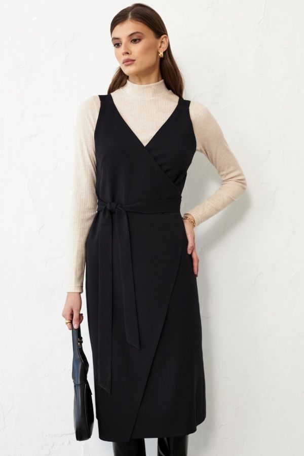Базовый сарафан из костюмной поливискозы. Модель прямого силуэта, на запахе.