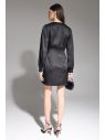 Женственное платье из фактурного жаккардового полотна. Отрезное и прилегающее по талии, верх на запахе, декоративная сборка и завязки по переду. Рукав слегка спущенный расширенный к низу на широкой манжете Застёжка на потайную молнию в боковом шве.