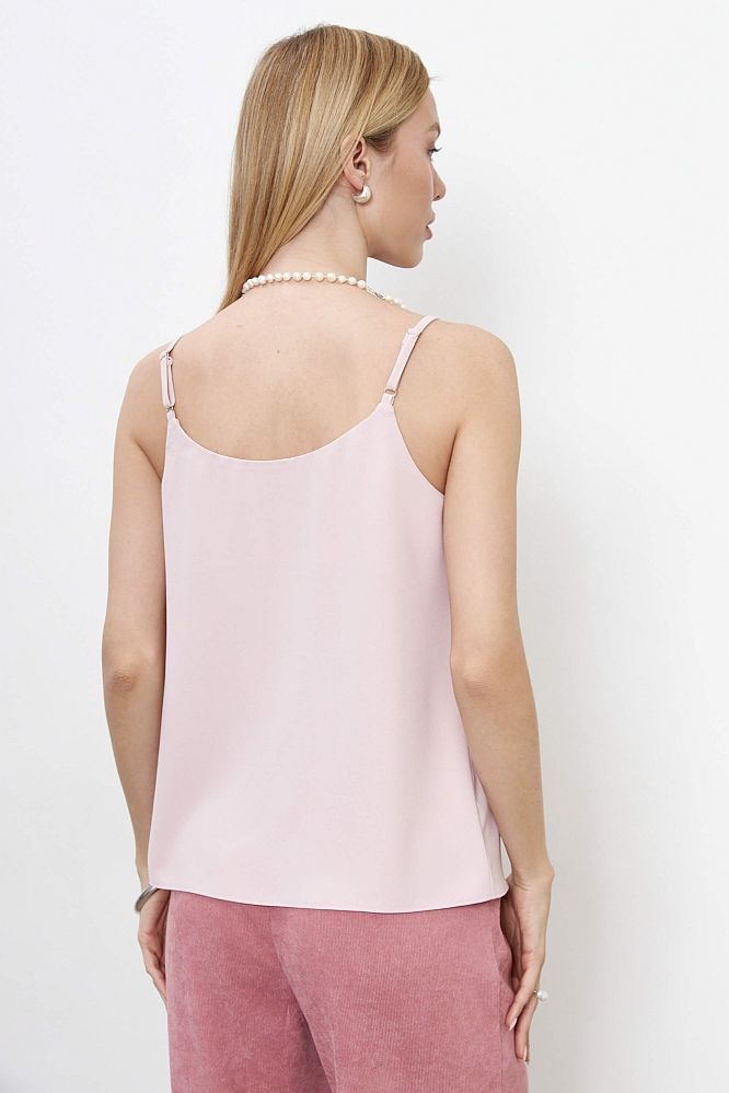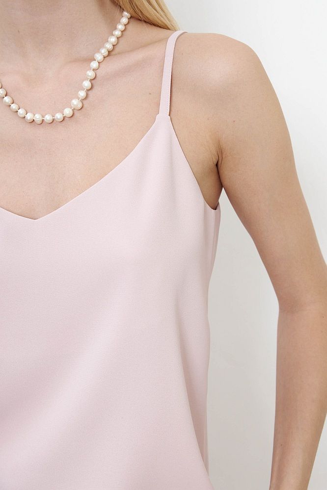 Базовый топ из крепового полотна для любого случая. Модель полуприлегающего силуэта на тонких, регулируемых бретелях. V-образный вырез горловины по переду.