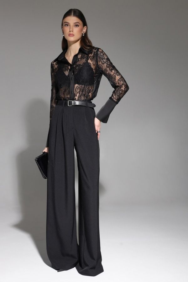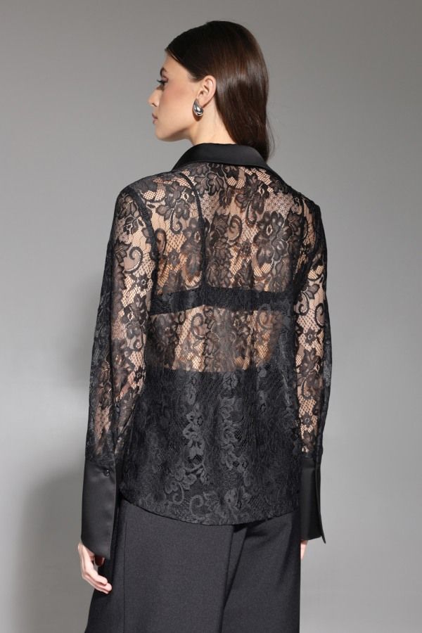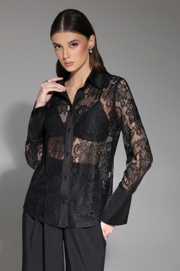 Роскошная блуза из кружевного полотна. Воротник, планка и манжеты выполнены из атласного полотна. Рукав втачной, по низу широкая манжета.