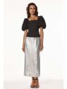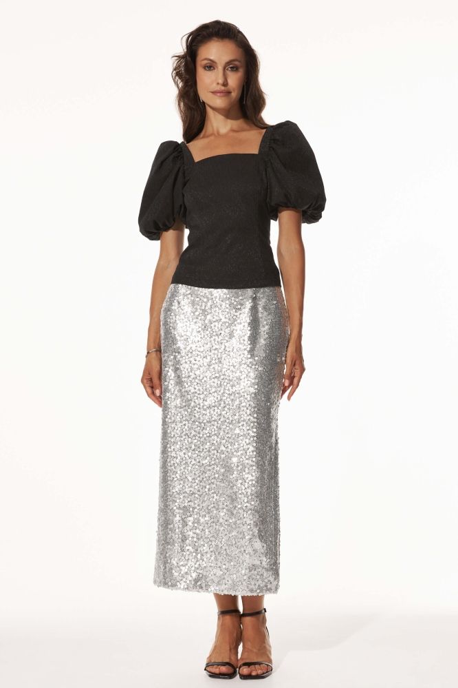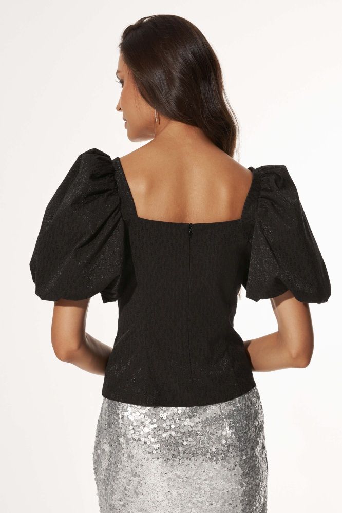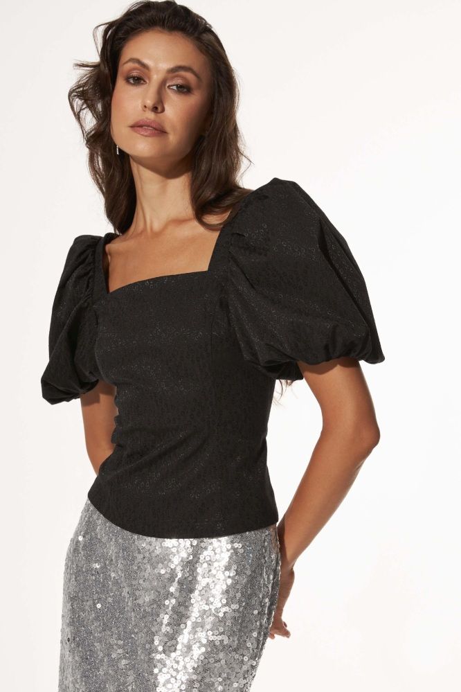 Блуза из жаккарда с эффектным рукавом. Модель прилегающего силуэта с пышным рукавом. Застежка на потайную молнию в боковом шве.