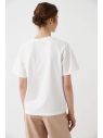 Футболка с авторским принтом из трикотажного полотна. Модель свободного силуэта. Рукав спущенный, короткий. Горловина обработана бейкой.
