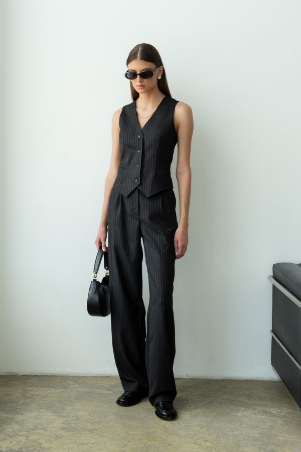 Стильные брюки из костюмного полотна. Модель прямого силуэта. По переду боковые карманы, стрелки и застёжка-гульфик.