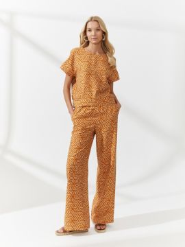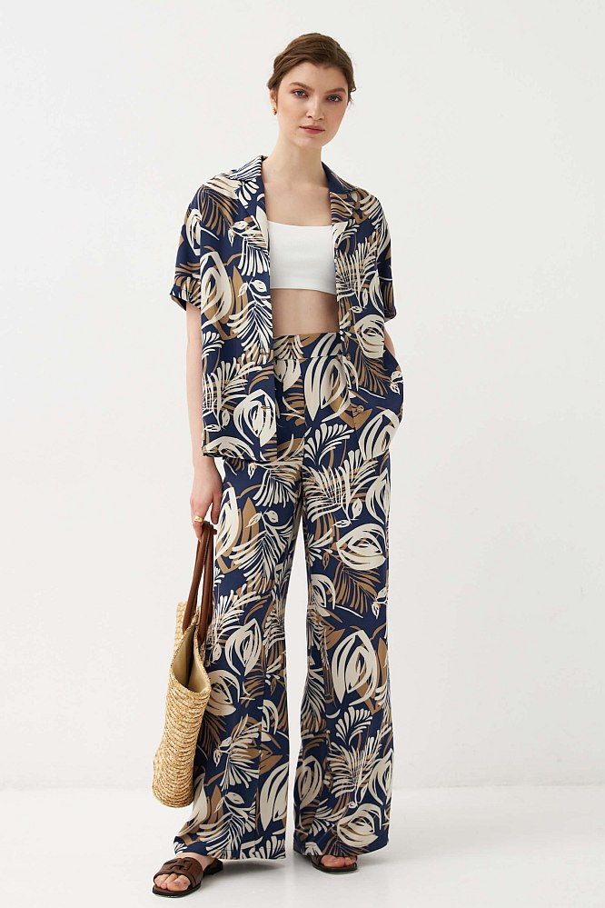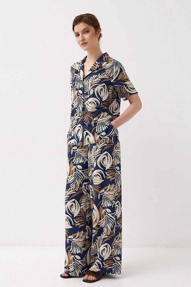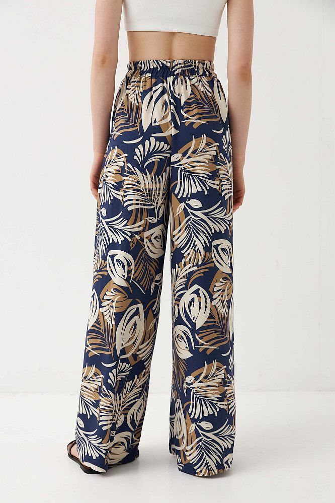 Комфортные брюки в пижамном стиле из вискозы с авторским принтом. Свободные брюки прямого силуэта на притачном поясе. По спинке резинка. В боковых швах карманы.