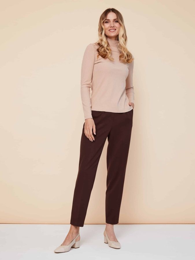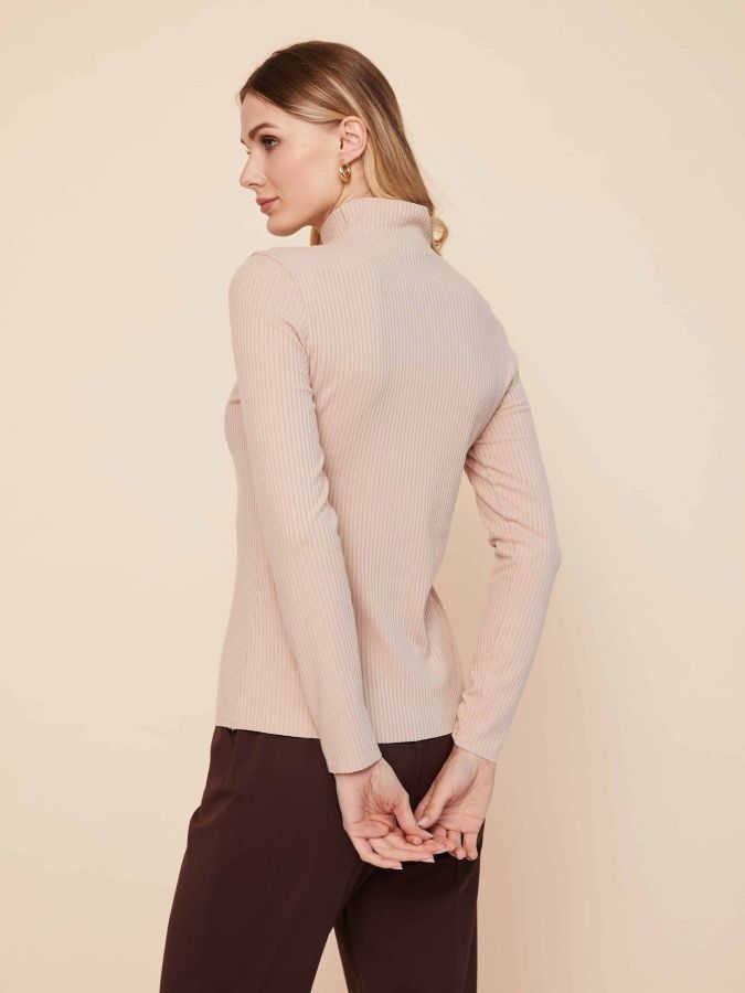 Спокойный бежевый оттенок делает этот джемпер с невысоким воротником идеальным фоном для любой одежды. За комфорт в течение дня отвечают трикотаж в рубчик, который легко тянется и не сковывает движения, и нежная вискоза в его составе, поддерживает оптимальную для тела температуру.
