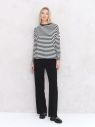 Черно-белый джемпер в бретонскую полоску сможет стать акцентной деталью образа с однотонными вещами. Для изготовления свободной модели с низкой проймой и длинным рукавом использовали эластичный вискозный трикотаж, обеспечивающий комфортную посадку. Овальная горловина отделана черной бейкой. На фото джемпер представлен с юбкой А-2021 ШЕРЛ(В4) брюками Б-704 ВМА(В4).