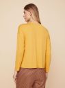 Тонкий джемпер с длинными рукавами медового оттенка — верный способ добавить красок повседневному образу. И дело не только в насыщенном цвете мягкого вискозного трикотажа. Вывести яркость на максимум модели с круглой горловиной помогает аппликация - квадрат с принтом, словно нарисованными от руки кисточкой. На фото джемпер представлен с брюками Б-703 ВИШ(О2).