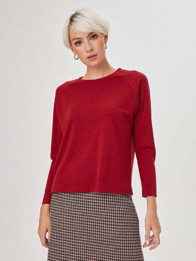 Лаконичный джемпер винного оттенка одинаково гармонично дополнит и повседневный образ, и наряд для офиса с нестрогим дресс-кодом. Для изготовления модели с рукавами-реглан использовали тончайший трикотаж, который хорошо тянется, а так же поддерживает оптимальную температуру и дарит исключительно приятные тактильные ощущения. На фото представлен с юбкой А-2014 СОБ2(О2)