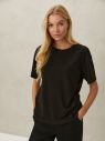 Чёрный джемпер прямого кроя лишён всякого декора, что превращает его в идеальную базу для повседневного образа. Для пошива модели с круглой горловиной и короткими рукавами, использовали мягкий трикотаж джерси. Он хорошо пропускает воздух и слегка тянется, не ограничивая свободу движений. На фото джемпер представлен с брюками Б-900 ФРА(О3)."