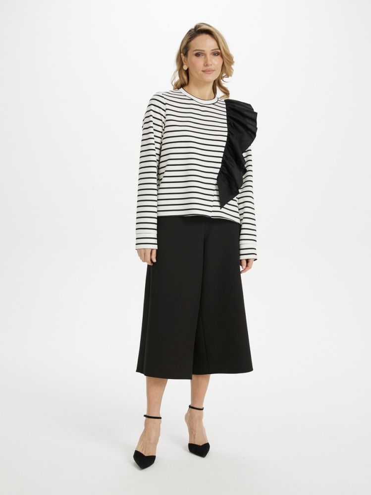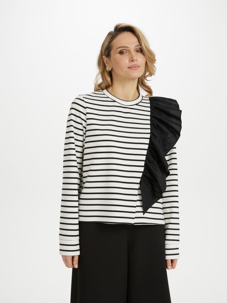 Классика, романтизм и спорт- сочетаем несочетаемое и получаем стильную, универсаньную модель на каждый день. Свитшот выполнен из плотного, несминаемого, тактильно приятного трикотажа. Модель декорирована асимметричным воланом.