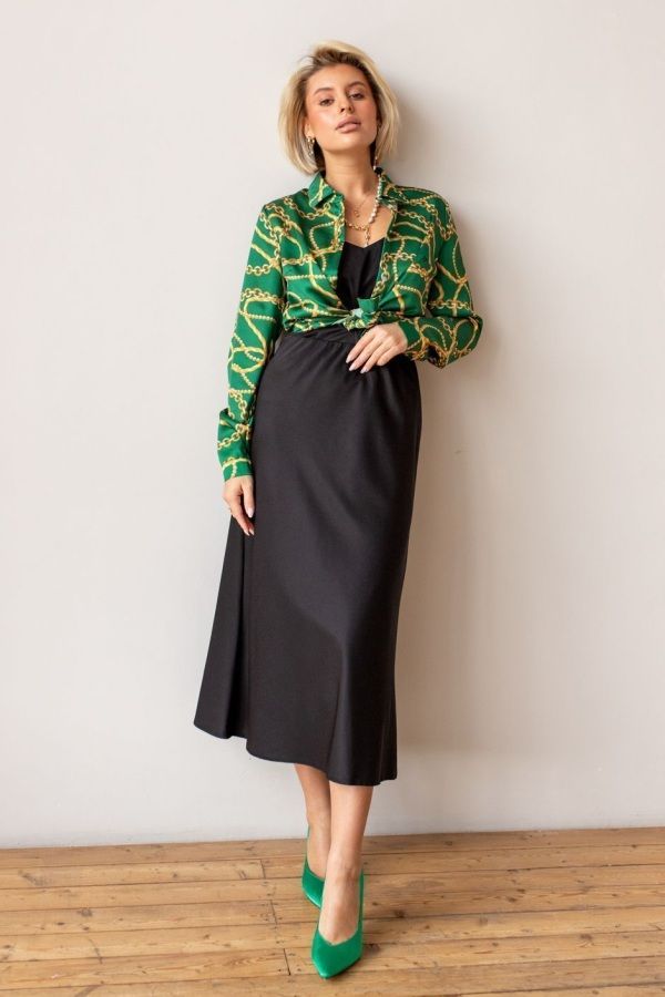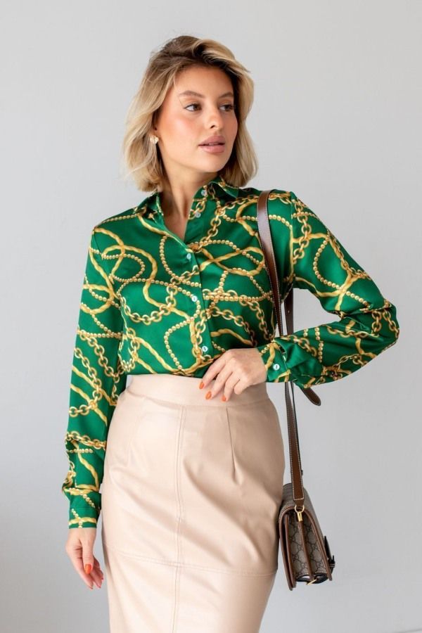ТБ-34 цепи-зеленый блузка АНГЕЛИКА