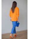 Ткань:искусственный шелк. Рубашка очень свободного покроя, линия плеча занижена, воротник на стойке, спереди застежка на пуговицы. Рукав ¾, с патой. Длина ок.71см.