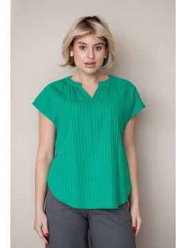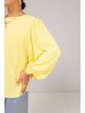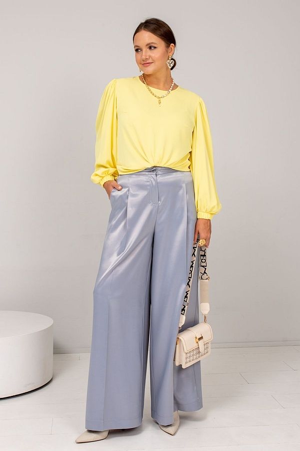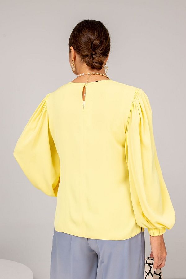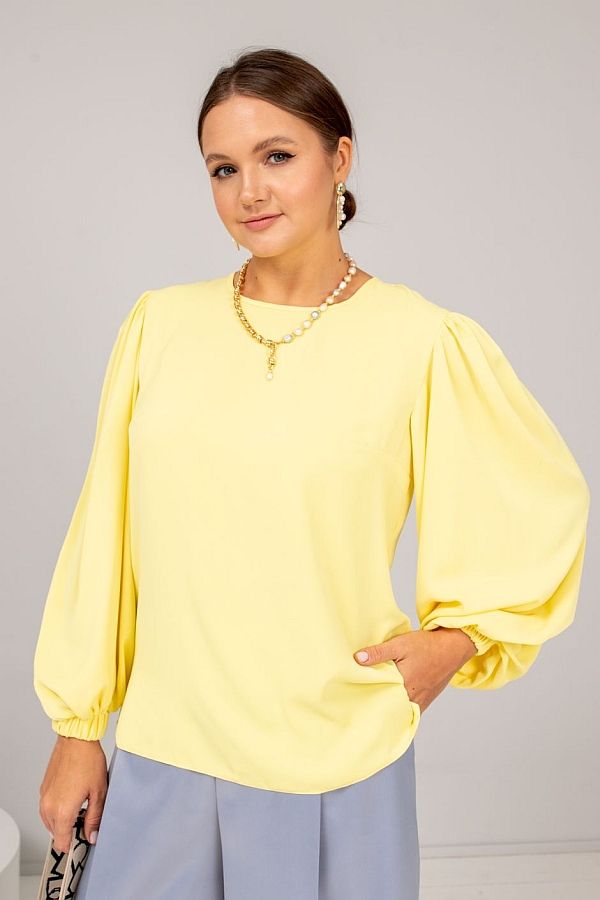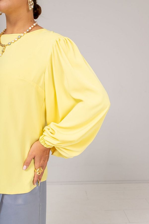 Ткань: блузочная однотонная. Блуза простого покроя, по спинке застежка на пуговицу. Рукав пышный, со сборкой по окату и по низу рукава, длинный. Длина ок.67см