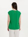 Топ из искусственного шелка прямого свободнго силуэта. Округлая горловина с застёжкой на спинке на пуговицу. Слегка спущенное плечо. Разрезы по бокам. Длина модели до линии бёдер.