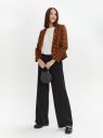 Укороченный жакет с длинными рукавами и глубоким вырезом, сшили из фактурного материала с переплетением ворсованных нитей оранжевого и чёрного цветов. Благодаря такой ткани, приталенная модель обволакивает тёплом, почти не мнется и сохраняет первоначальную форму. Эластичная подкладка не сковывает движения. Застежка на одну пуговицу. Актуальная версия осеннего жакета на фото представлена с брюками Б-900 ФРА(О3) и джемперами С-36 МИБ(О3) и С-36 МИЧ(О3)."