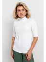 Ткань: трикотажное полотно с вискозой, с выработкой в резинку. Водолазка с воротником-стойкой. Рукав до локтя. Длина ок.66 см