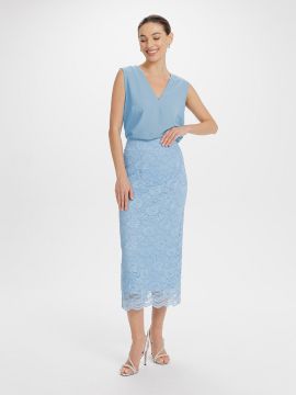 Ткань: коттон однотонный. Юбка джинсовая прямого покроя, с высокой посадкой и разрезом спереди, с карманами. Длина ок.70см.
