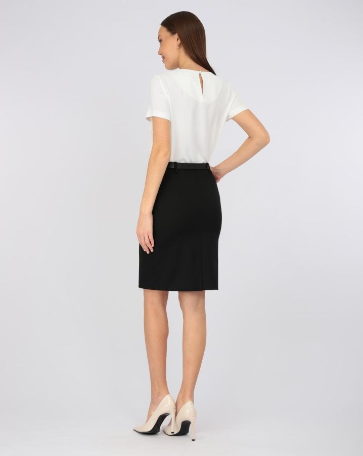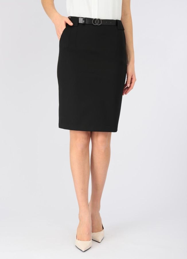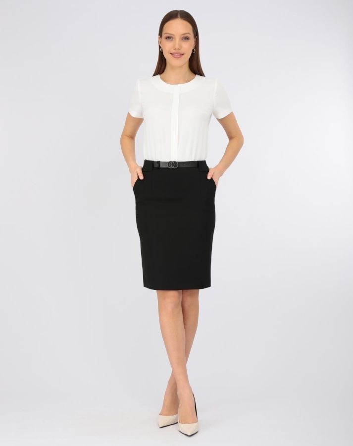 Замечательная офисная юбка. На поясе есть шлевки для ремня. По бокам - функциональные карманы. Модель хорошо сидит по фигуре, сочетается с офисными рубашками и блузками.